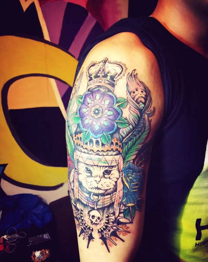 当前位置: 首页 >重庆市纹身店-茉莉刺青纹身图案>印第安风格猫咪纹身图片_手臂成品欧美动物纹身图案