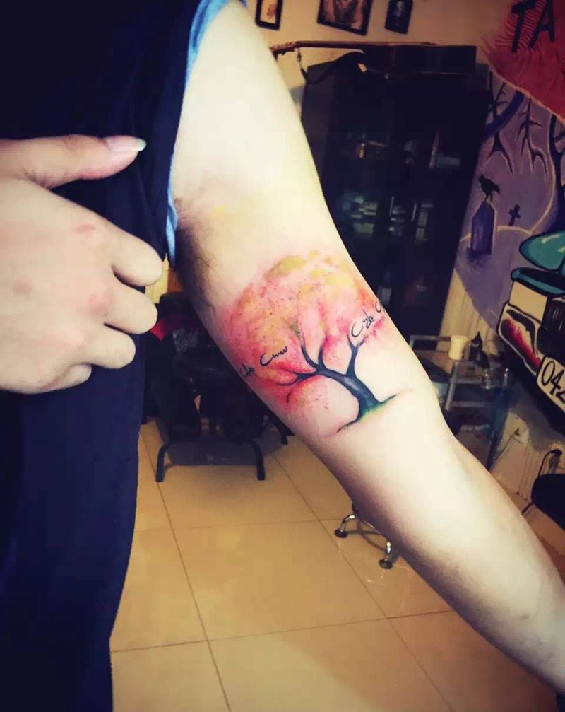 当前位置: 首页 >重庆市纹身店-茉莉刺青纹身图案>彩绘生命树纹身图片_手臂成品清新插花纹身图案