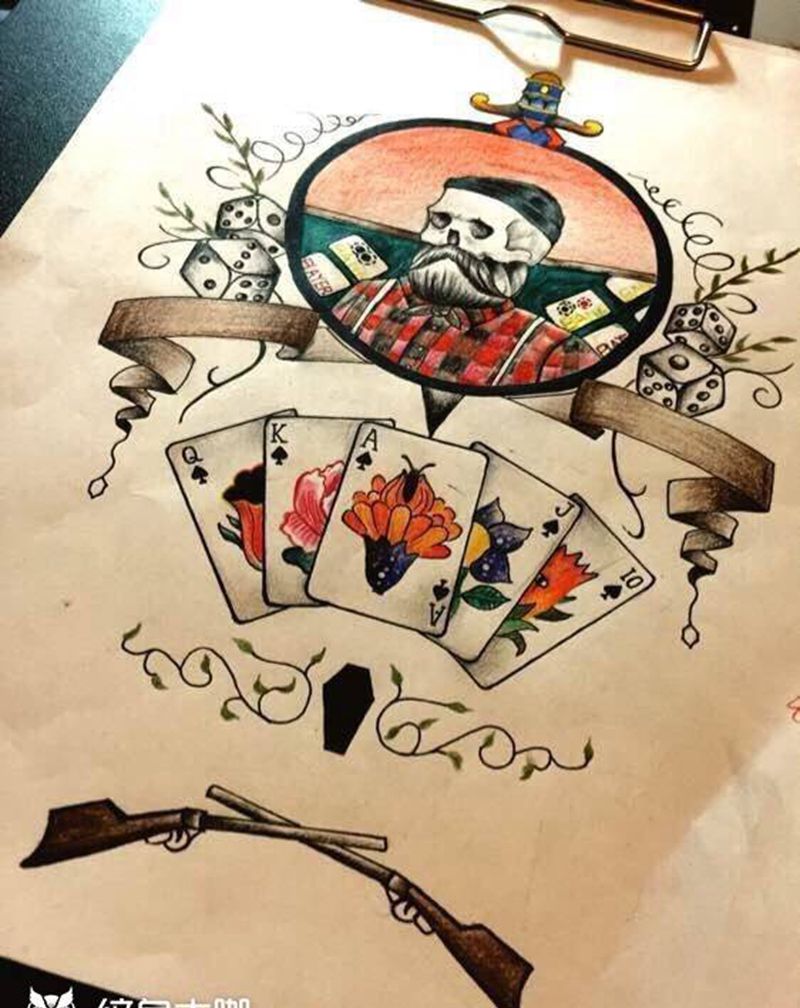 扑克花胸纹身图片_手稿成品胸部欧美清新人物原创扑克纹身图案