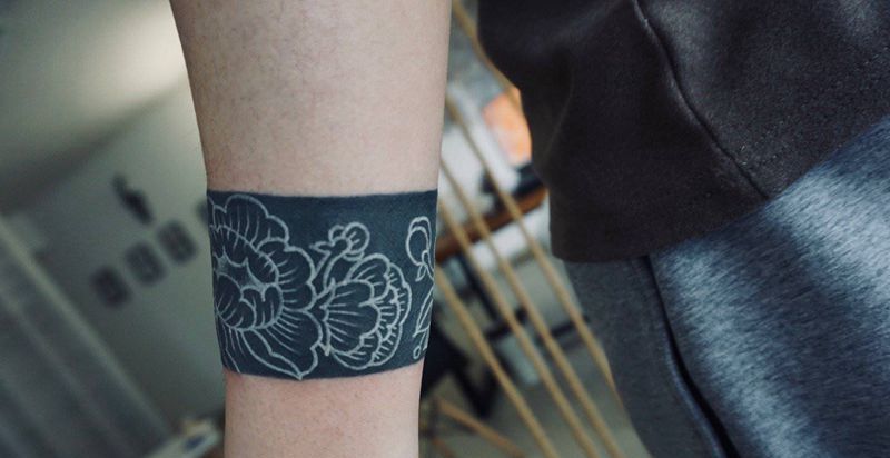 当前位置: 首页 >重庆市纹身店-茉莉刺青纹身图案>黑手环提白牡丹纹身图片_手臂图腾纹身图案