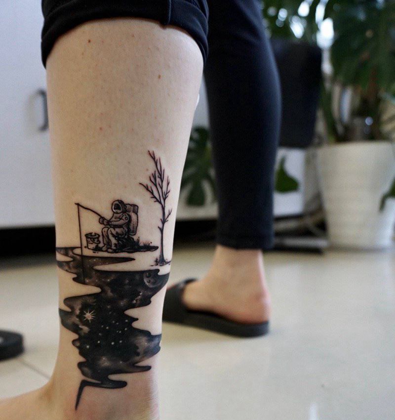 遮盖纹身图片_腿部遮盖 太空纹身图案