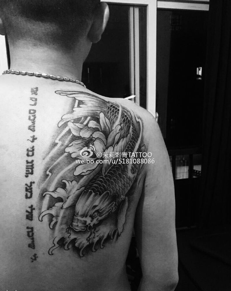 鱼纹身图片_成品背部传统动物鱼纹身图案