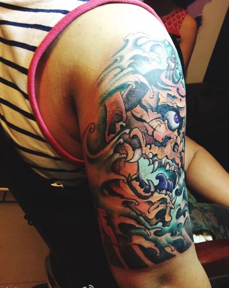 般若纹身图片_成品手臂传统鬼神纹身图案