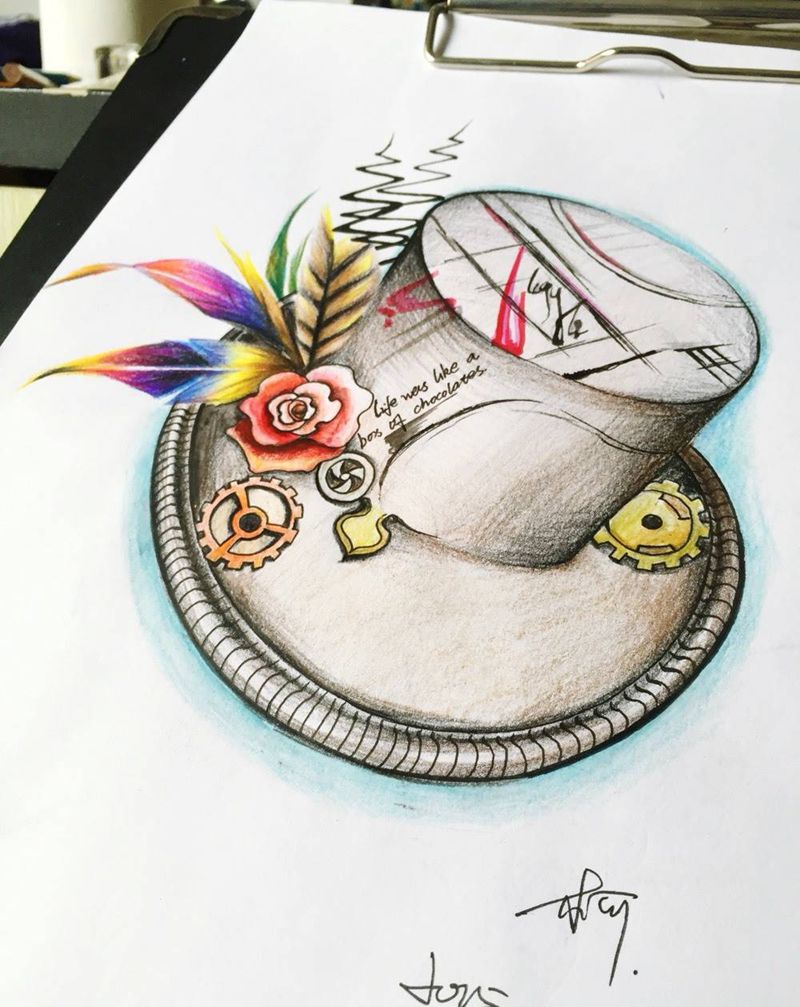 school 帽子纹身图片_手稿欧美原创静物纹身图案