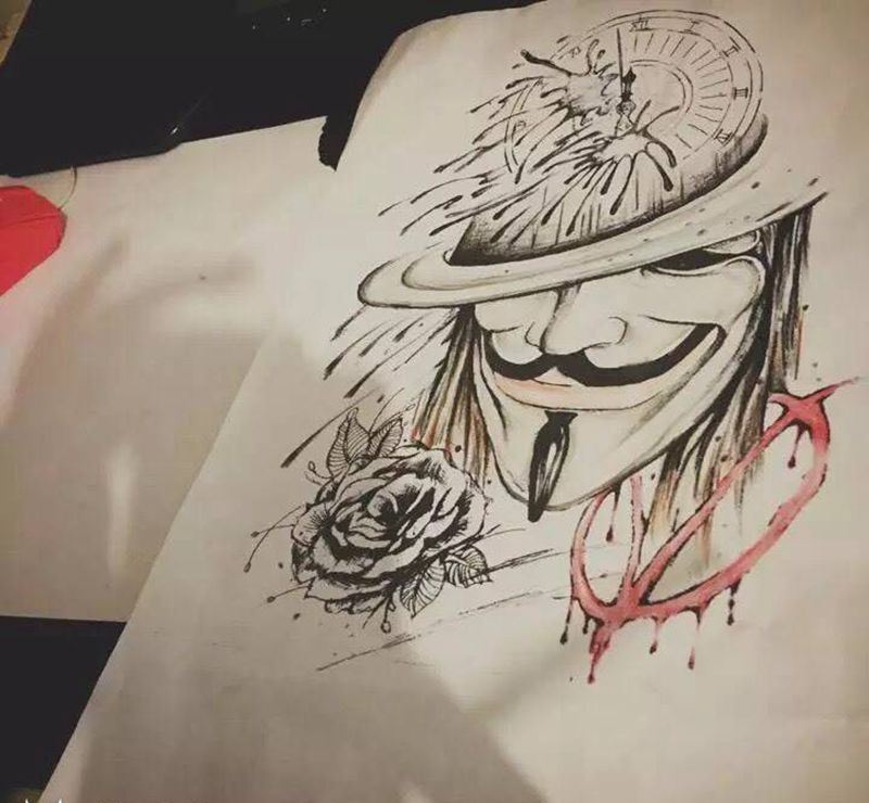 v字仇杀队纹身图片_手稿成品手臂欧美清新人物静物原创纹身图案