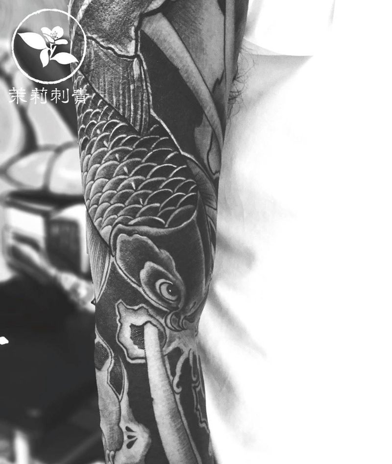 当前位置: 首页 >重庆市纹身店-茉莉刺青纹身图案>日式7分袖纹身图片_成品手稿手臂传统鱼纹身图案