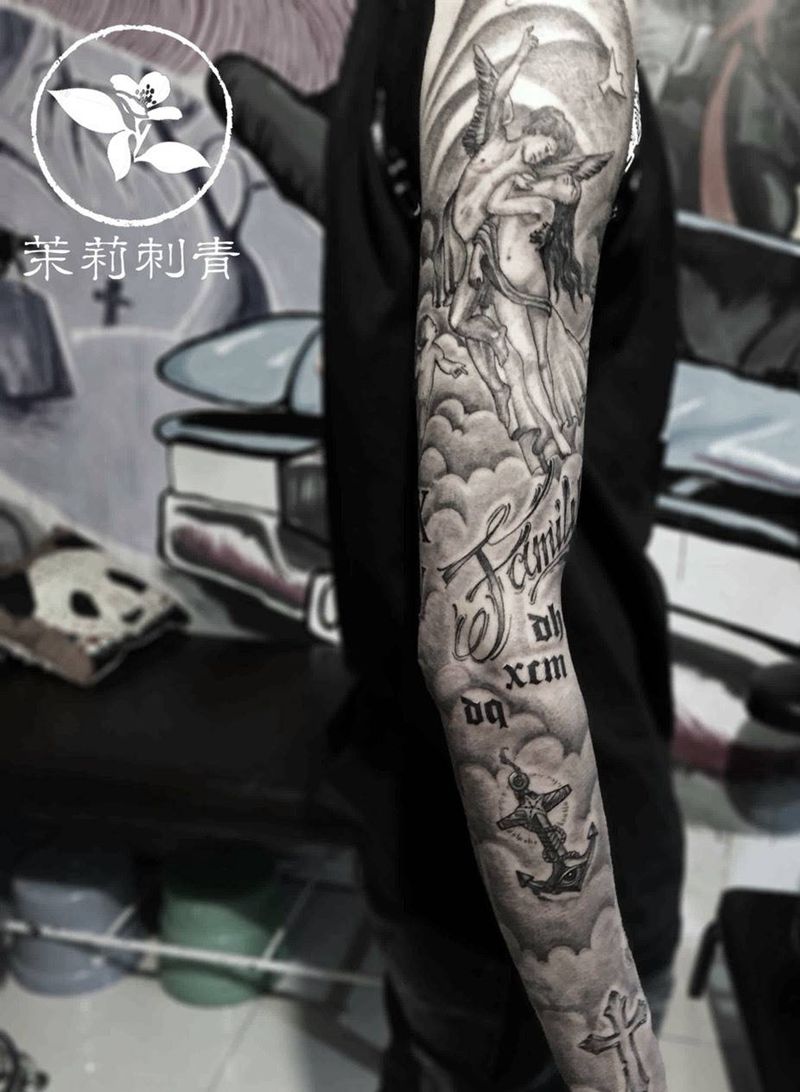 当前位置: 首页 >重庆市纹身店-茉莉刺青纹身图案>欧美拼接花臂纹身图片_手臂手稿成品欧美纹身图案