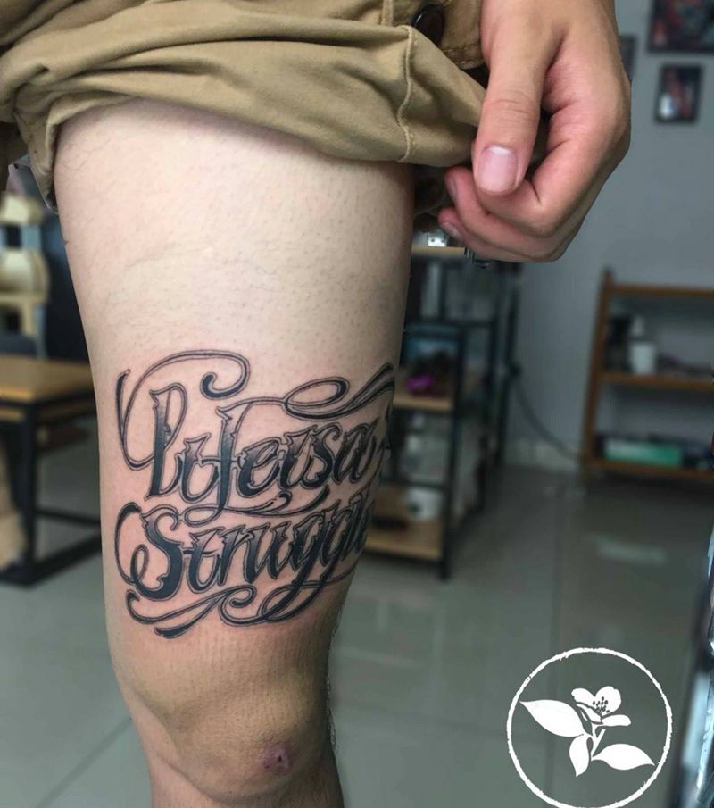 • T包小腿吹火男+阿多福纹身图片_腿部老传统新传统吹火男阿