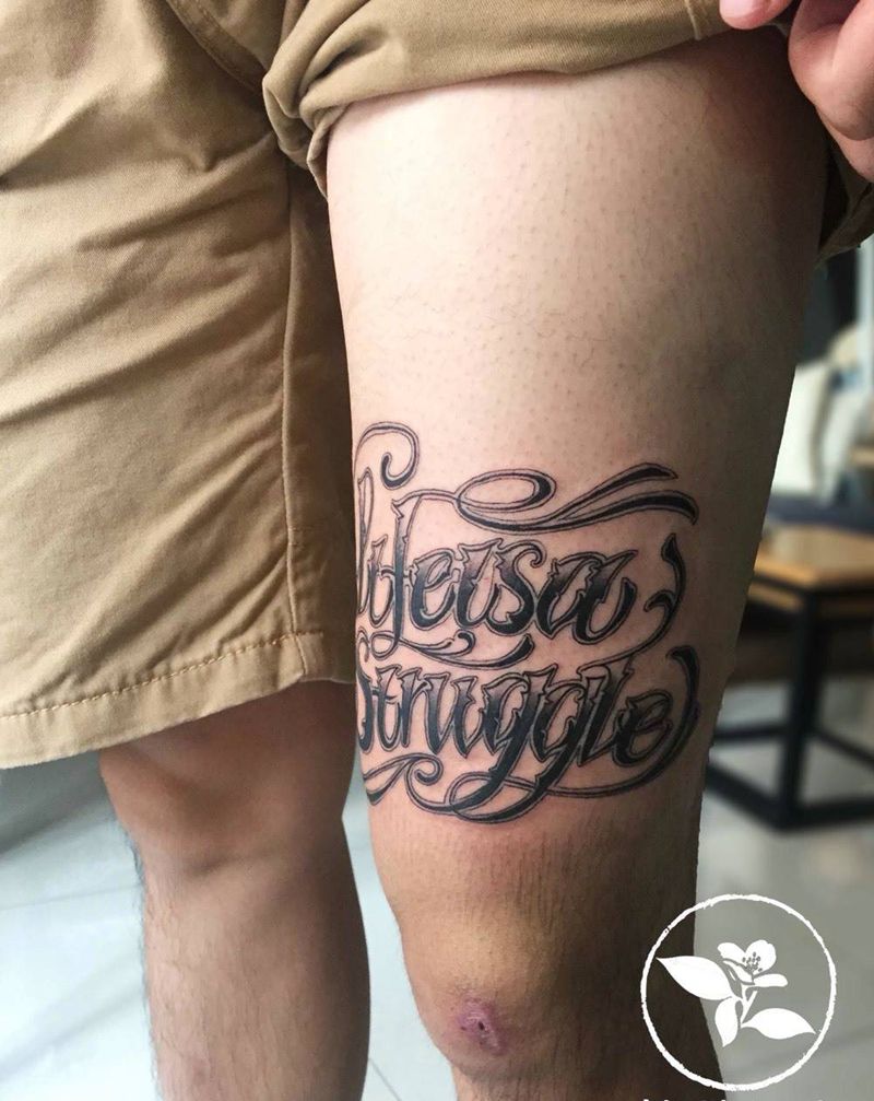 • T包小腿吹火男+阿多福纹身图片_腿部老传统新传统吹火男阿