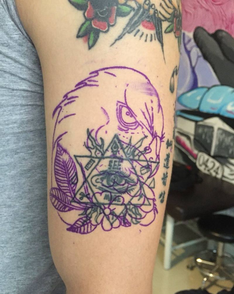 当前位置: 首页 >重庆市纹身店-茉莉刺青纹身图案>new school 鹰头遮盖纹身图片_成品手稿手臂欧美动物纹身图案