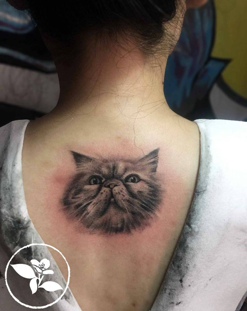 当前位置: 首页 >重庆市纹身店-茉莉刺青纹身图案>猫咪纹身图片_成品手稿背部动物纹身图案