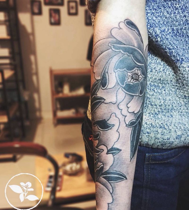 小臂牡丹纹身图片