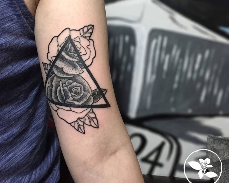 • 手背潮流时尚的玫瑰花眼睛纹身图案