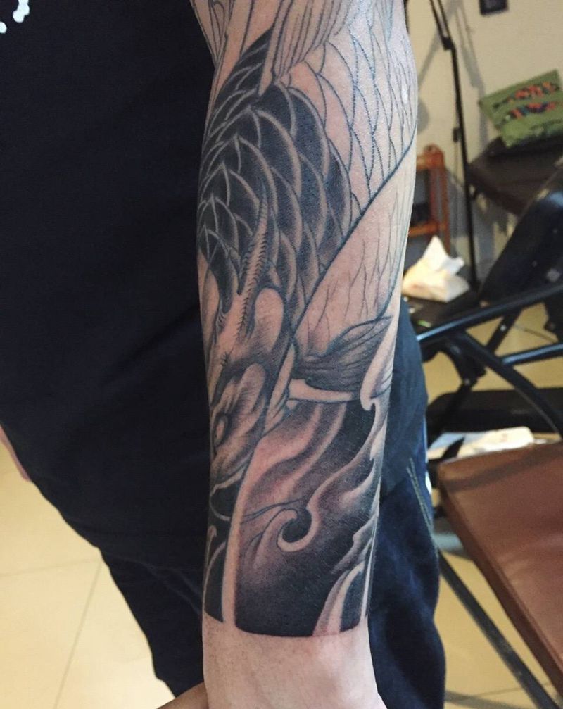 • T网红王老大花腿龙纹身图片_腿部新传统纹身图案