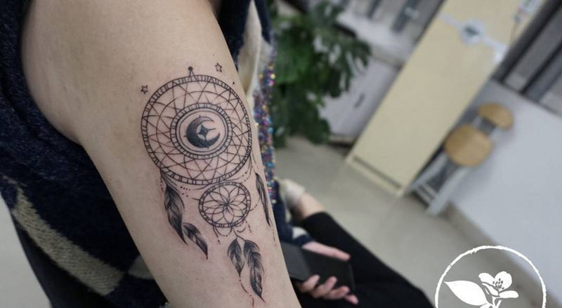 当前位置: 首页 >重庆市纹身店-茉莉刺青纹身图案>捕梦网纹身图片_手臂几何纹身图案