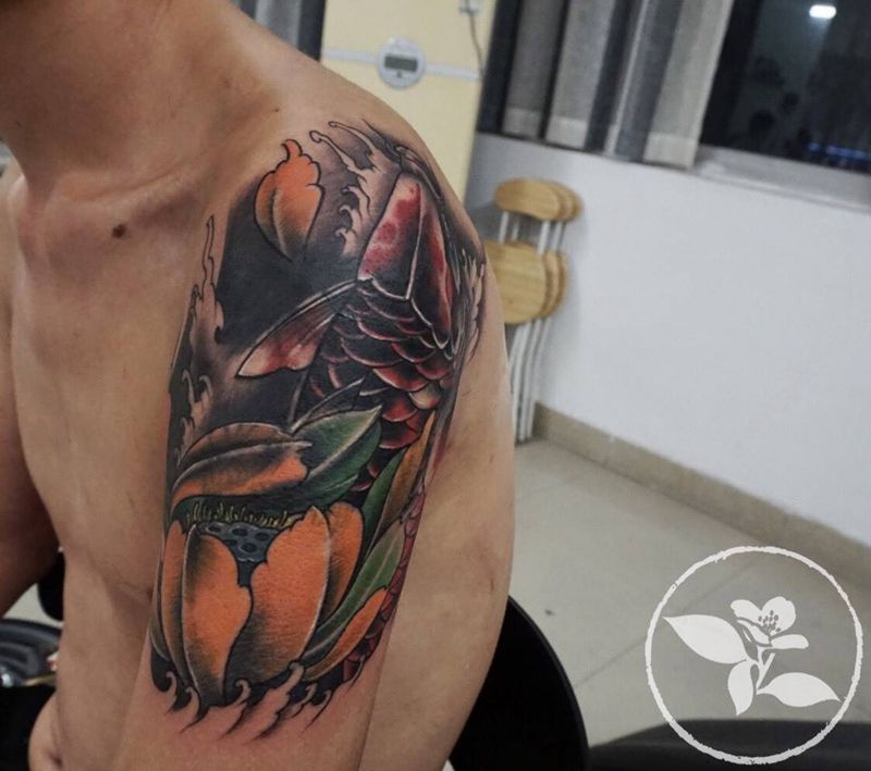• 纹身吧推荐的披肩图腾半胛纹身图案作品展示