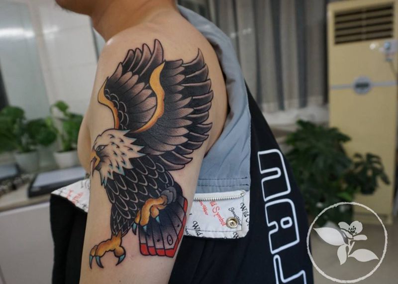 当前位置: 首页 >重庆市纹身店-茉莉刺青纹身图案>老鹰纹身图片_手臂Old School图腾纹身图案