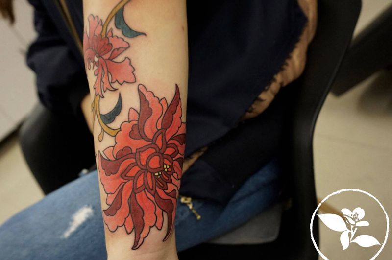 当前位置: 首页 >重庆市纹身店-茉莉刺青纹身图案>花纹身图片_手臂图腾水彩纹身图案