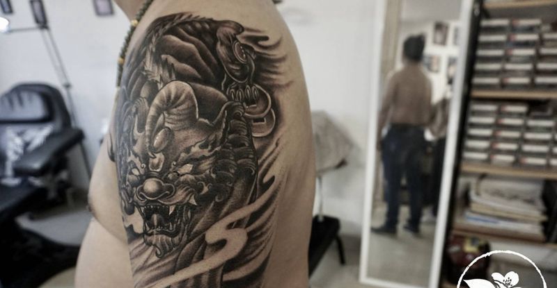 当前位置: 首页 >重庆市纹身店-茉莉刺青纹身图案>貔貅纹身图片_手臂新传统貔貅纹身图案