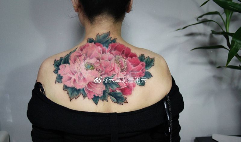 牡丹纹身图片_背部新传统纹身图案