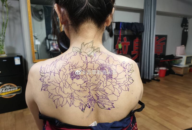 牡丹纹身图片_背部新传统纹身图案