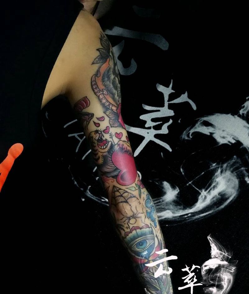 当前位置: 首页 >重庆市纹身店-云萃刺青纹身图案>拼接花臂纹身图片_手臂Old School纹身图案