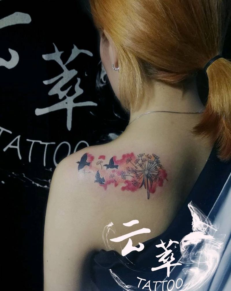 当前位置: 首页 >重庆市纹身店-云萃刺青纹身图案>蒲公英纹身图片_背部水彩纹身图案