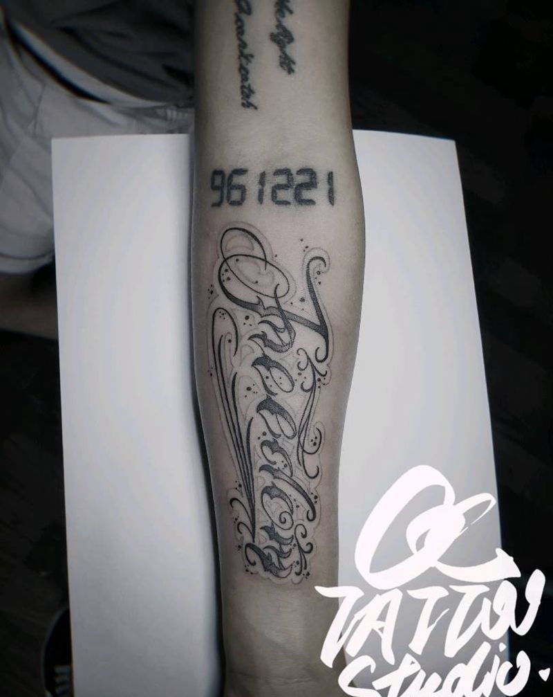 当前位置: 首页 >重庆市纹身店-云萃刺青纹身图案>花体纹身图片_手臂花体字纹身图案