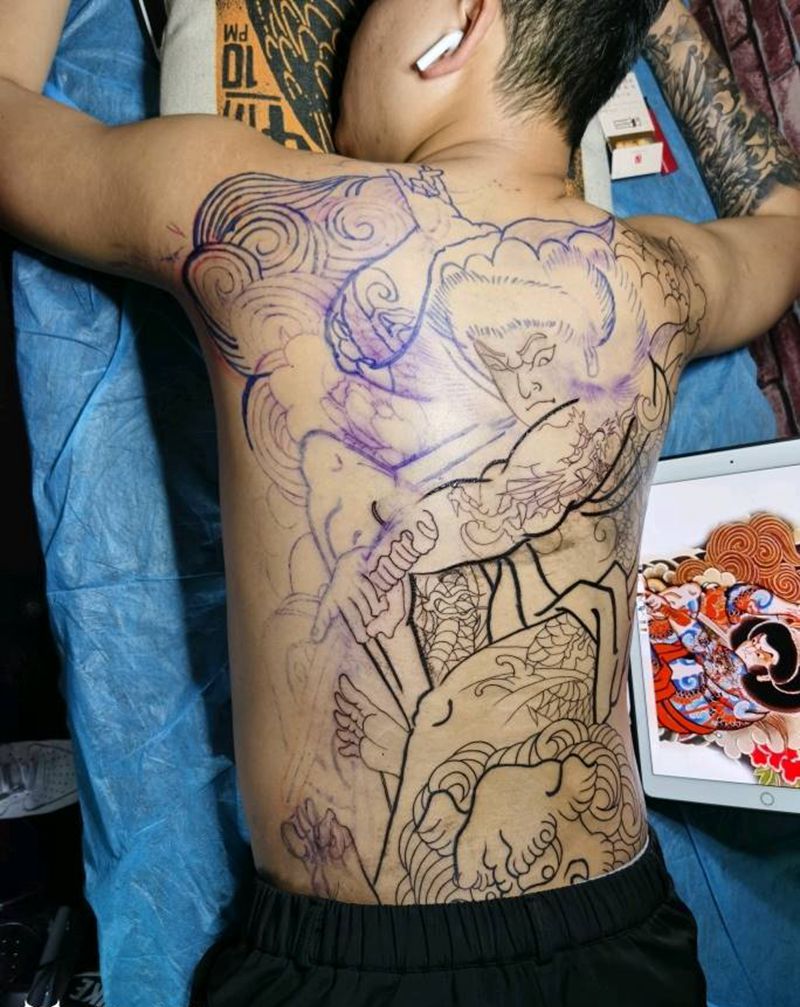 • 黑灰满背纹身图案