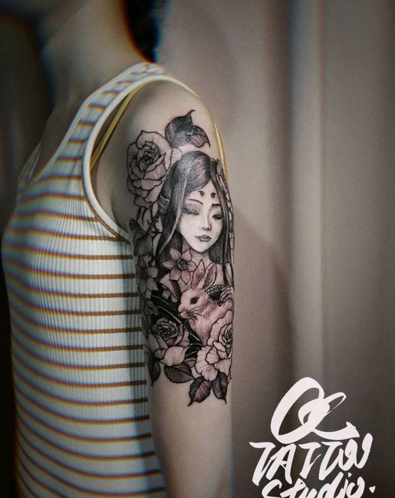• 女性大花胸纹身_43张霸气漂亮的女性大花胸纹身图案作品