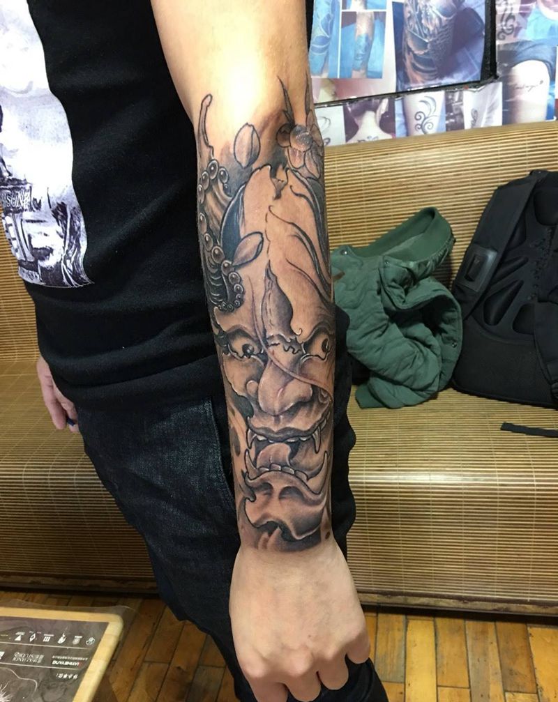 般若纹身图片_成品手臂传统鬼神纹身图案