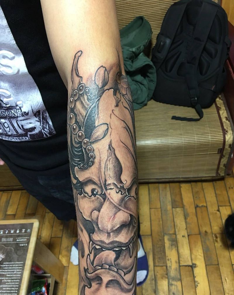 般若纹身图片_成品手臂传统鬼神纹身图案