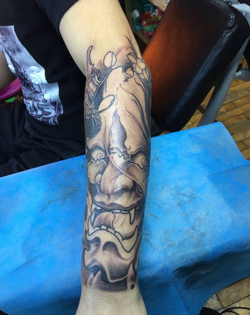 般若纹身图片_成品手臂传统鬼神纹身图案