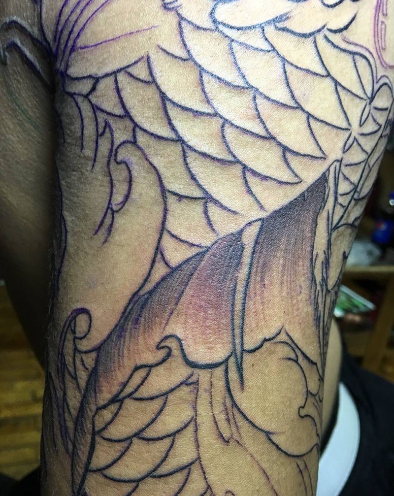 当前位置: 首页 >重庆市纹身店-北彫刺青纹身图案>鲤鱼纹身图片_成品臀部传统动物纹身图案