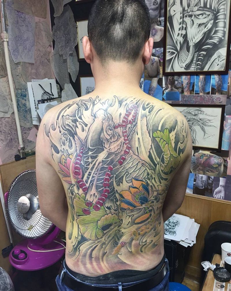 招财进宝纹身图片_成品背部传统动物纹身图案