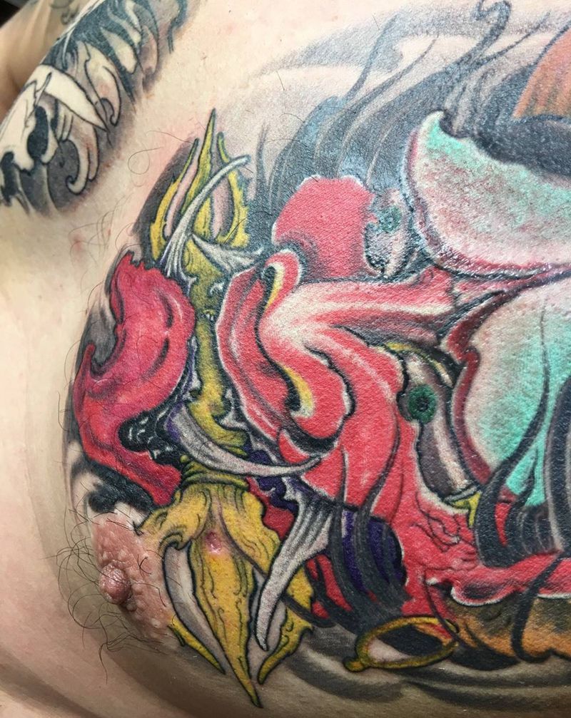 • 女性大花胸纹身_43张霸气漂亮的女性大花胸纹身图案作品