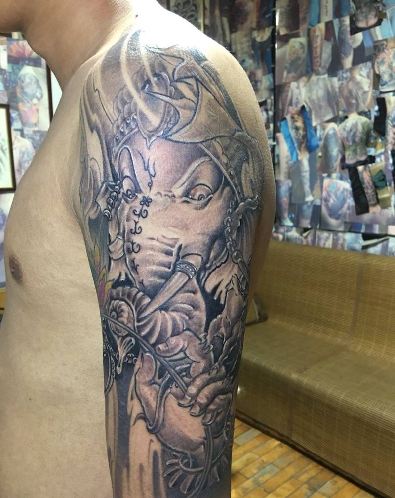 • 纹身吧推荐的披肩图腾半胛纹身图案作品展示