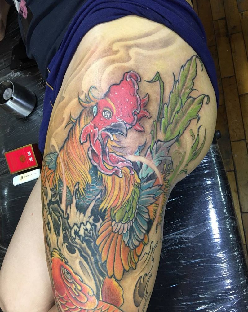 • T网红王老大花腿龙纹身图片_腿部新传统纹身图案