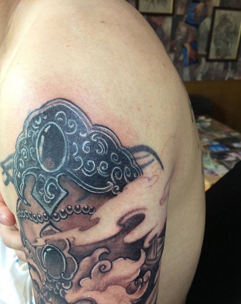 • 纹身吧推荐的披肩图腾半胛纹身图案作品展示