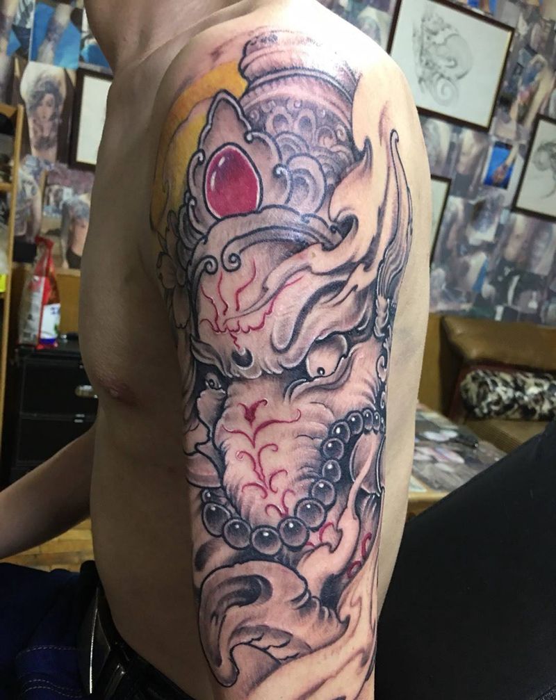 • T网红王老大花腿龙纹身图片_腿部新传统纹身图案