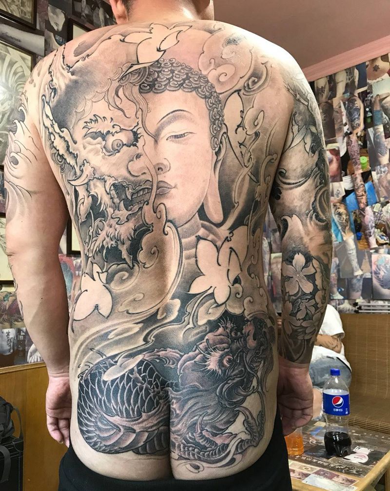 • 黑灰满背纹身图案