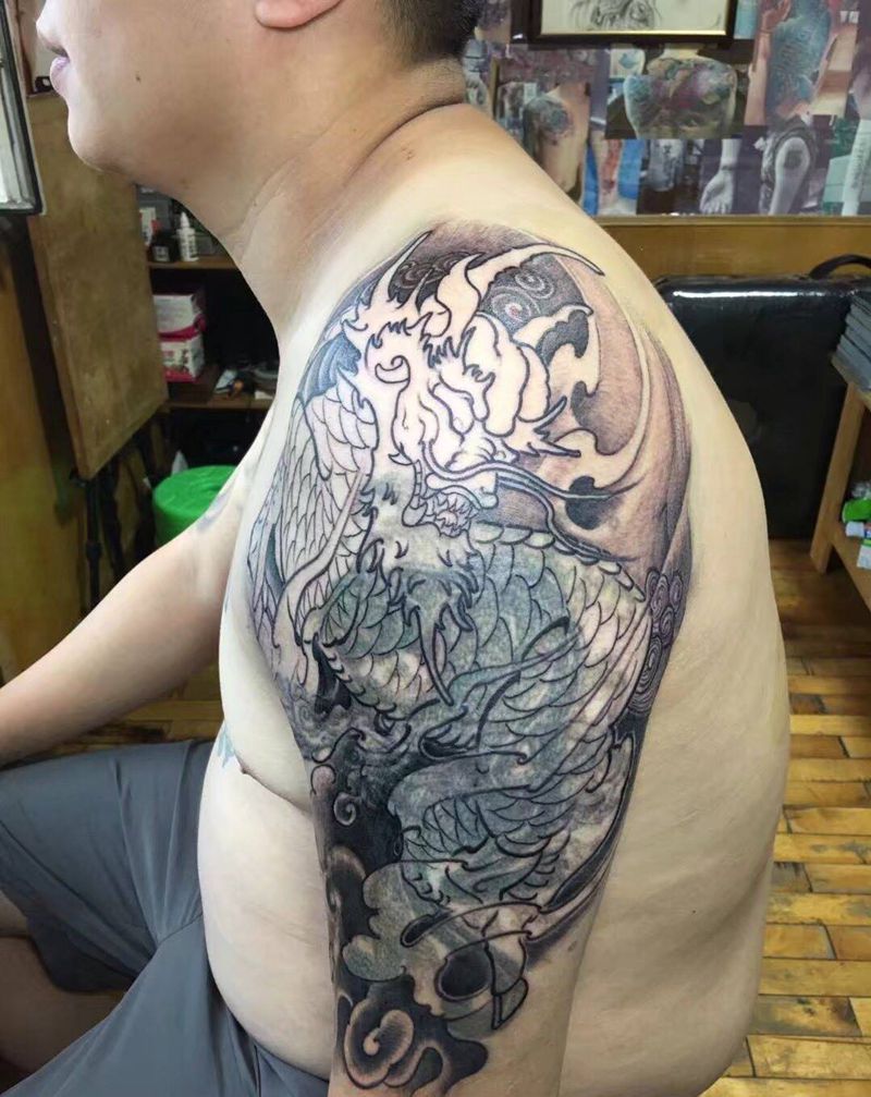 • T网红王老大花腿龙纹身图片_腿部新传统纹身图案
