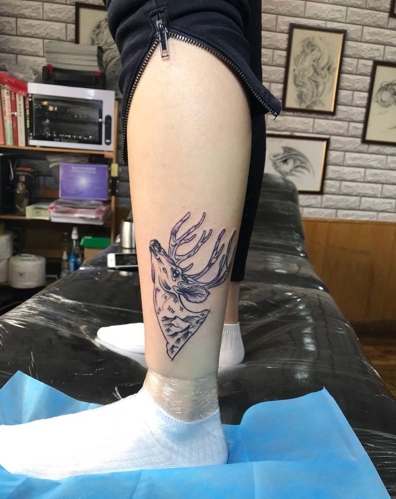 • T网红王老大花腿龙纹身图片_腿部新传统纹身图案