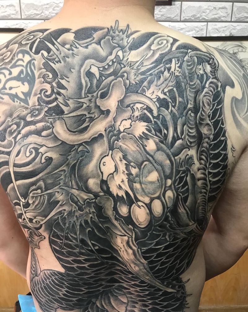 • T云龙九郎纹身图片_背部老传统云龙九郎纹身图案