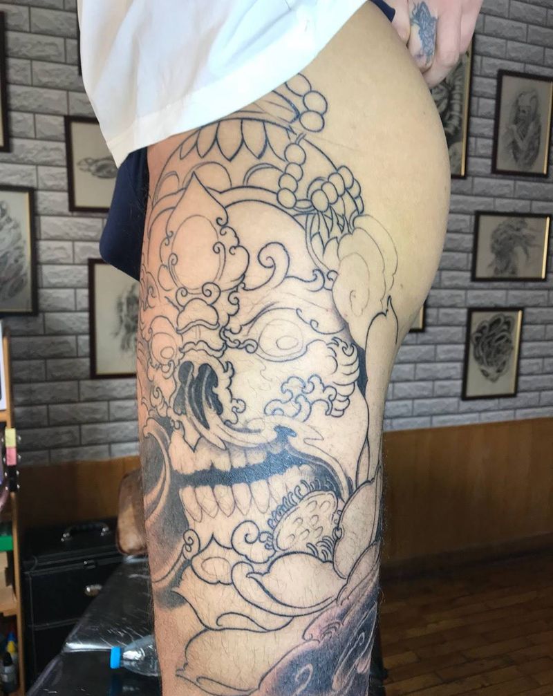 • T网红王老大花腿龙纹身图片_腿部新传统纹身图案