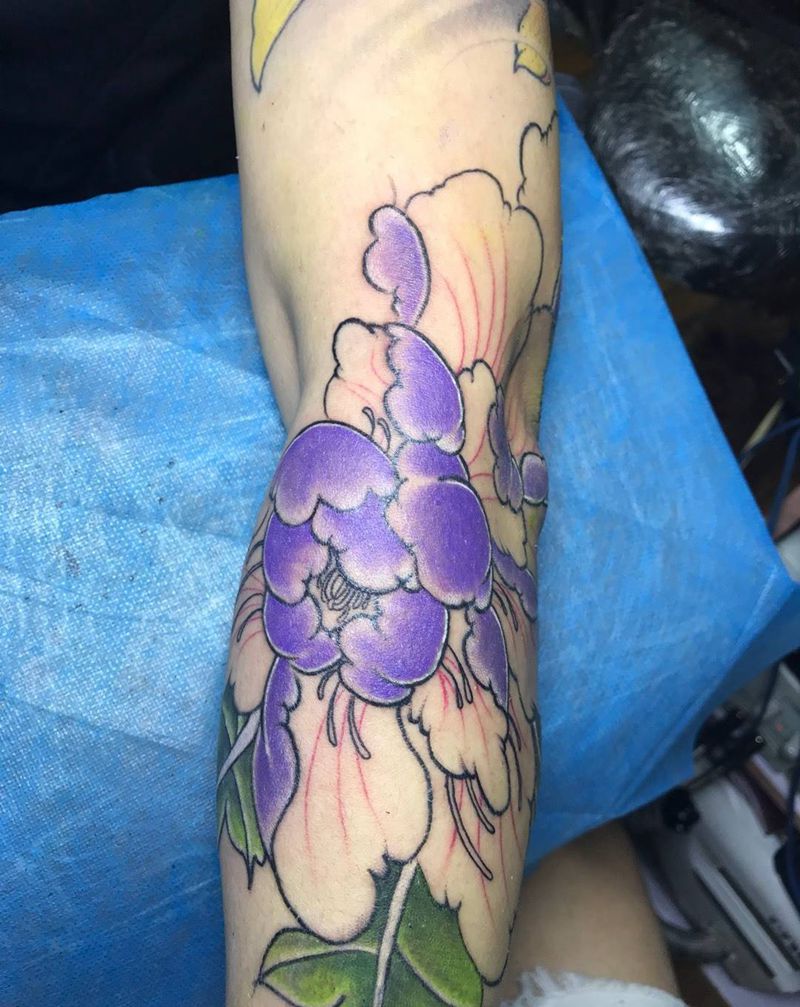 • T网红王老大花腿龙纹身图片_腿部新传统纹身图案