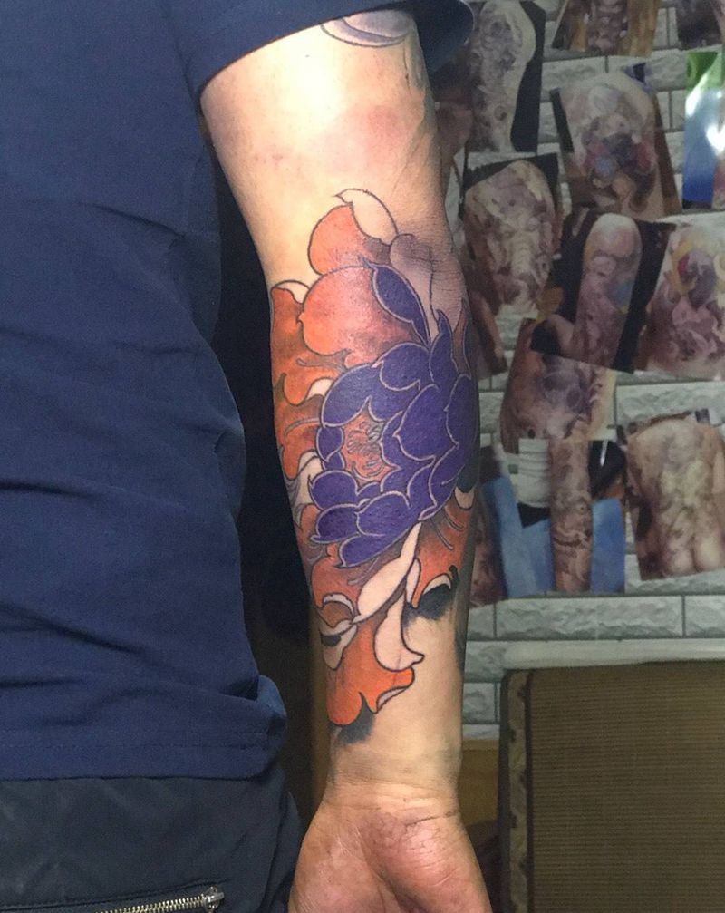 一组15张莲花纹身手