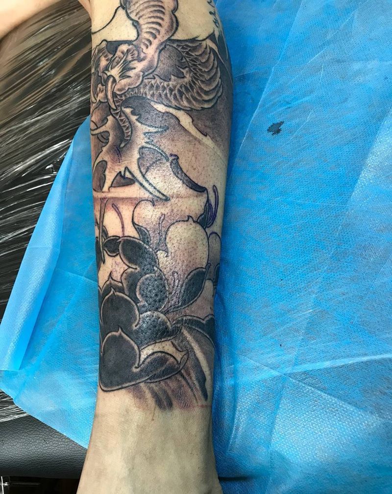 • T网红王老大花腿龙纹身图片_腿部新传统纹身图案