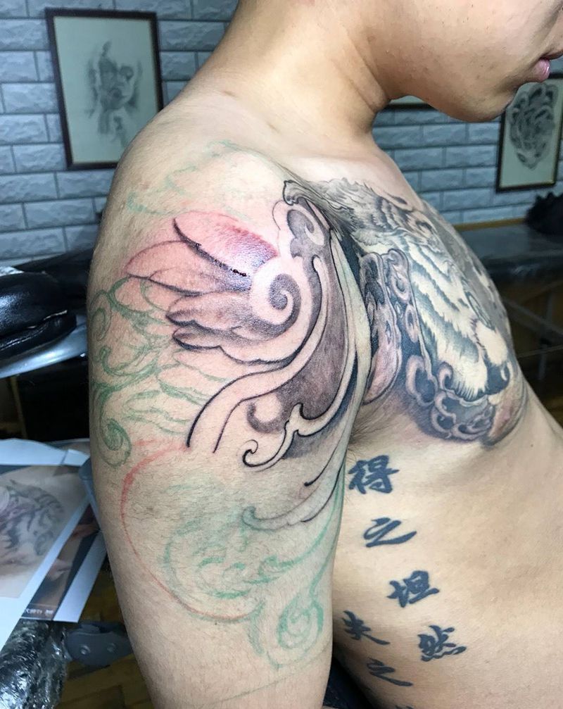 • 纹身吧推荐的披肩图腾半胛纹身图案作品展示