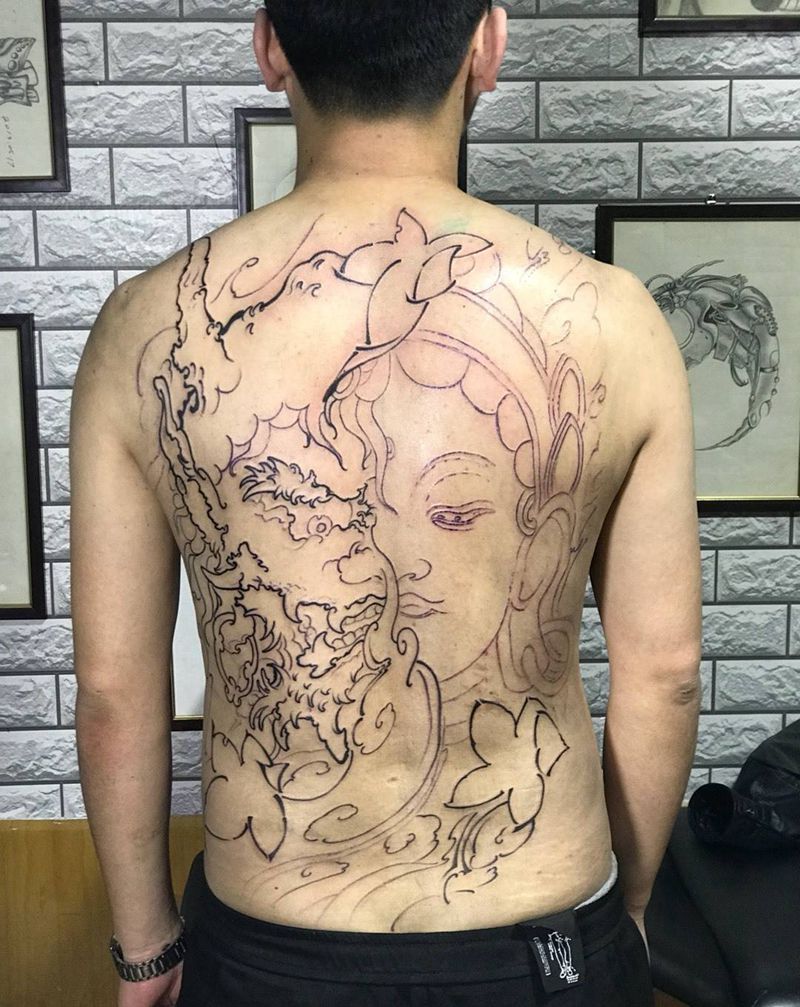 • T云龙九郎纹身图片_背部老传统云龙九郎纹身图案